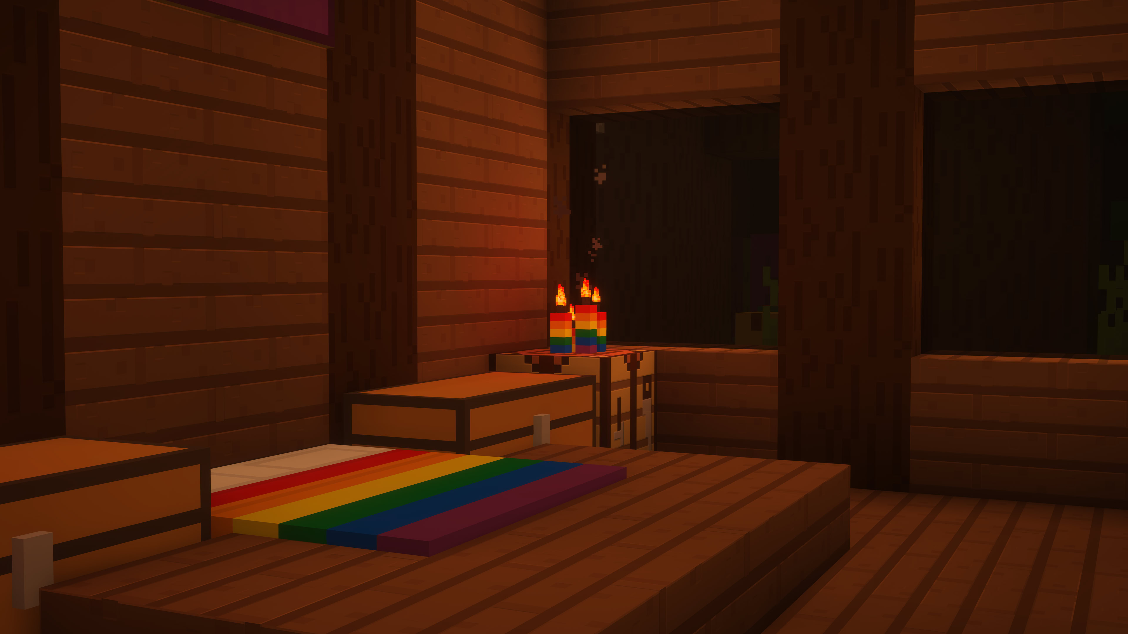 This is Pride Bones, a version of Pridepack by Pridecraft Studios in the style of Bare Bones. It comes with many LGBTQ+ Pride additions, including paintings, beds, mobs, candles and more!