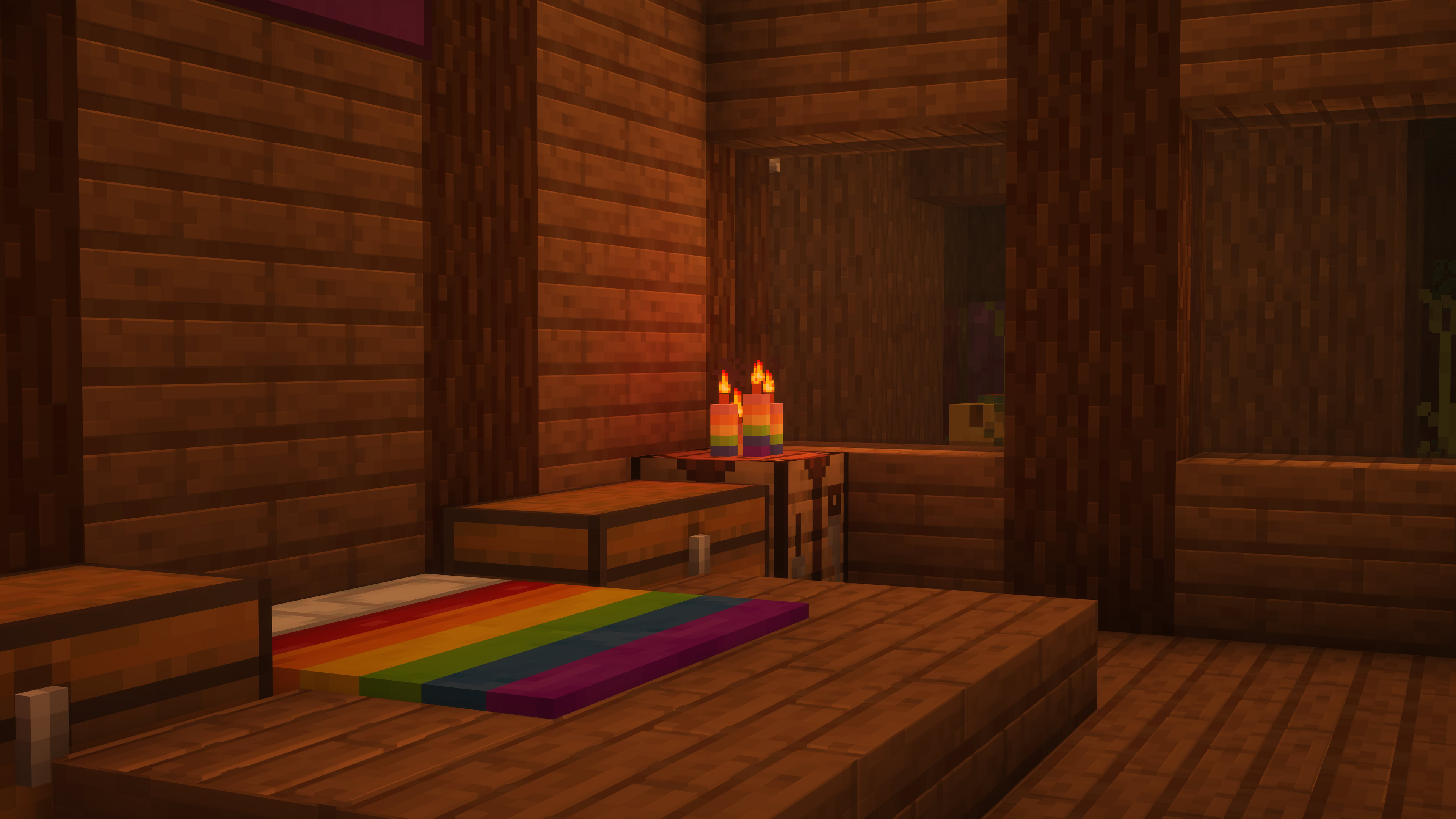 This is Pridepack, a Resource Pack made by Pridecraft Studios. It comes with many LGBTQ+ Pride additions, including paintings, beds, mobs, candles and more!